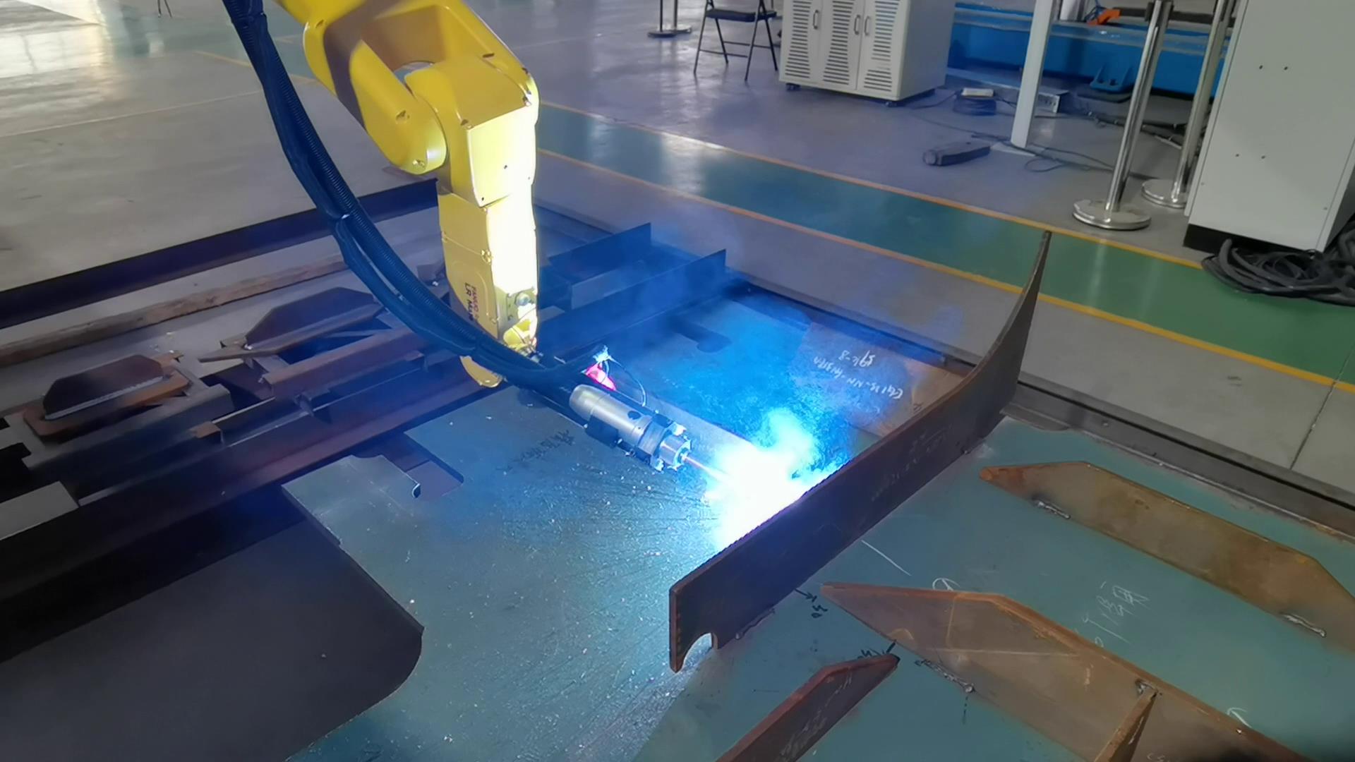 智能焊接在鋼構行業的成功應用針對鋼結構中常見的H型鋼等鋼梁工件,威卓設計研發了小龍門智能焊接工作站,焊槍部分使用鋼梁專用焊槍,更適用于鋼梁焊接;搭配傳感器使用,自動尋位識別焊縫,無